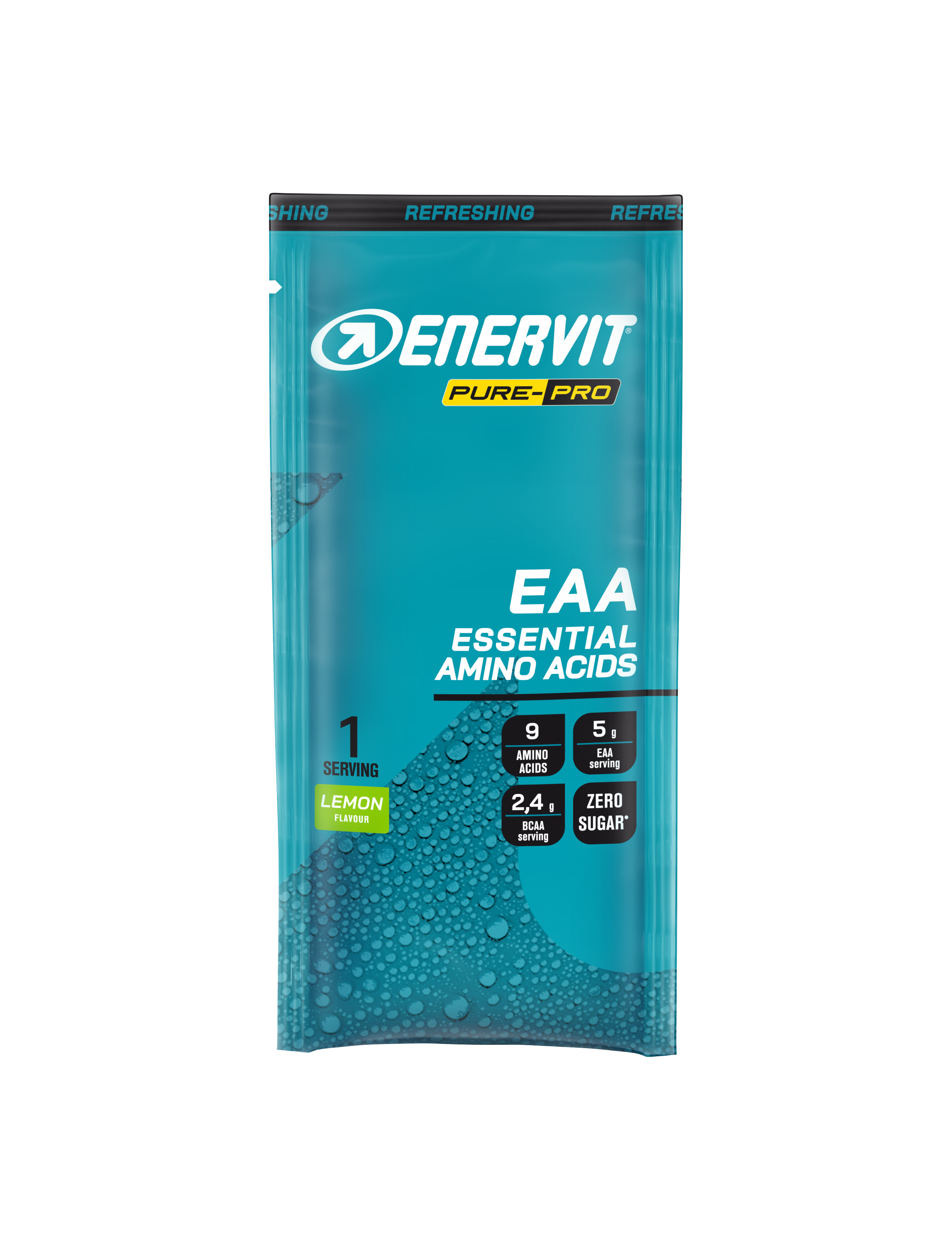 Enervit EAA obsahuje 5 g esenciálnych aminokyselín v jednej dávke, ktoré pomáhajú telu bojovať s únavou, vyčerpaním a regeneráciou po intenzívnom tréningu.