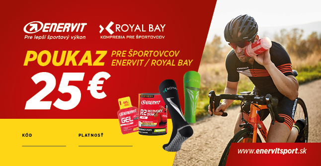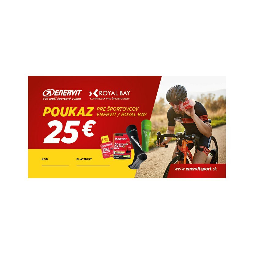 Kúpte poukážku v hodnote 25 € na nákup športovej výživy Enervit aj kompresného oblečenia Royal Bay a urobte radosť svojim blízkym a kamarátom, ktorí radi športujú.