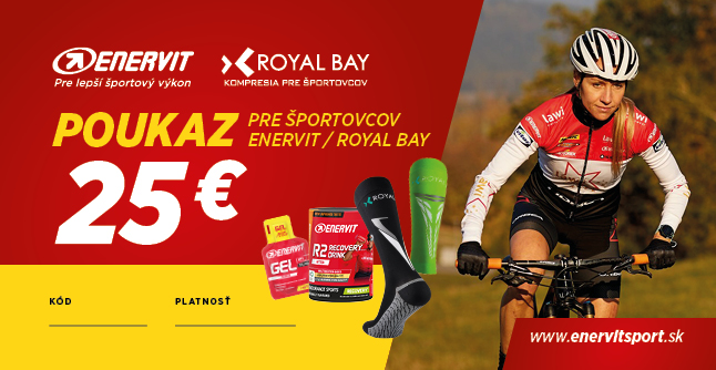Kúpte poukážku v hodnote 25 € na nákup športovej výživy Enervit aj kompresného oblečenia Royal Bay a urobte radosť svojim blízkym a kamarátom, ktorí radi športujú.